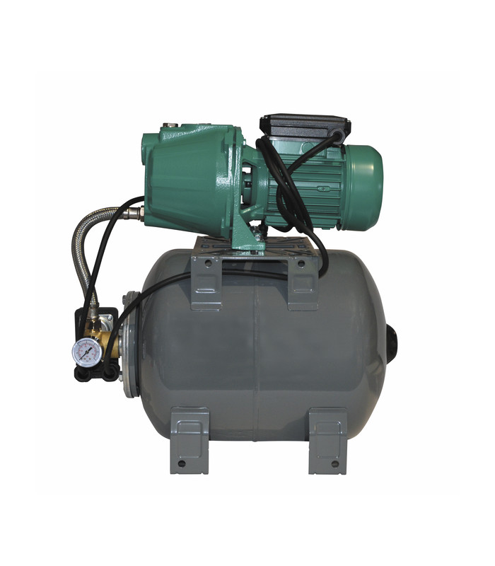 Kit complet composé d'une pompe autoamorçante jusqu'à 7 m, d'un réservoir à vessie et d'un interrupteur à pression avec fonction de démarrage et arrêt automatique