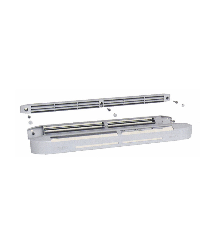 Bouche d'entrée d'air hygroréglable et son capuchon. Longueur 400mm, Hauteur 40mm, Epaisseur 30mm. Entraxe fixation 372mm. Livré avec 5 vis et 3 cache vis.