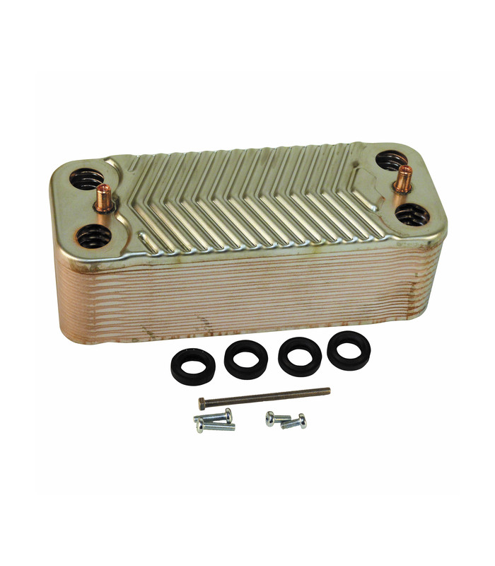 Aussi appelée échangeur ECS (eau chaude sanitaire), cette pièce détachée d'appareil de chauffage est le lien entre la partie de chauffage et la partie sanitaire. Il crée un transfert thermique de l'eau chauffée grâce à la combustion du gaz depuis la rampe gaz (provoquant de la chaleur dans le réseau de chauffage via l'échangeur thermique), vers le réseau d'eau chaude sanitaire.