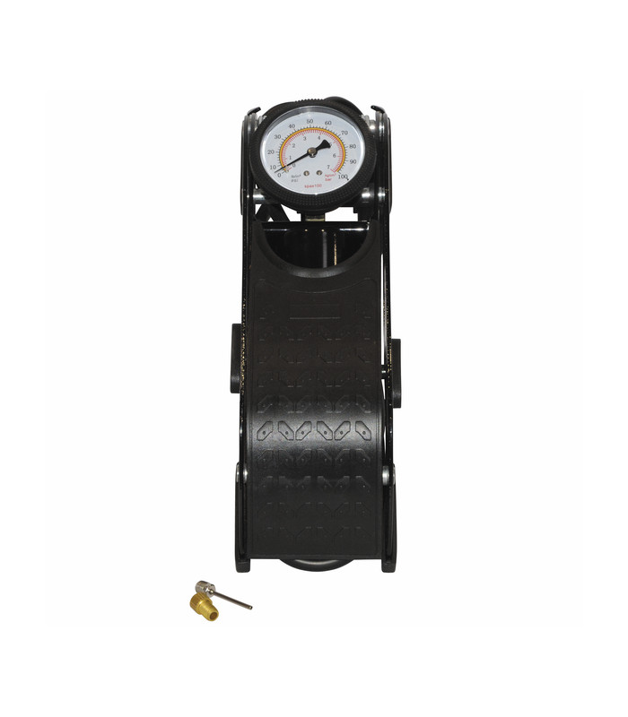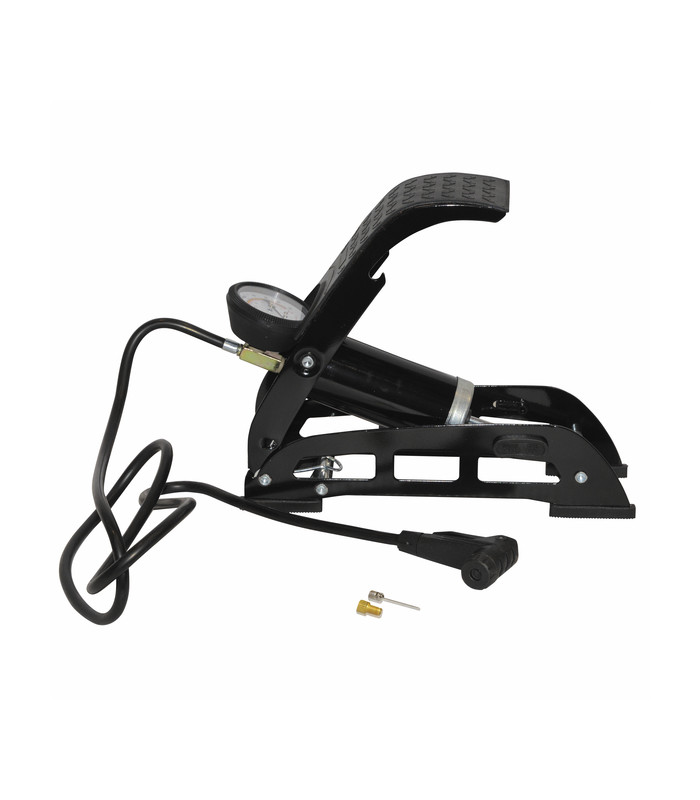 Foot pump with manometer 0to7 bars PSI, kg/cm2, bars, Kpa graduated Supplied with hose 1.5 m longFixing clippedal with non slip surface