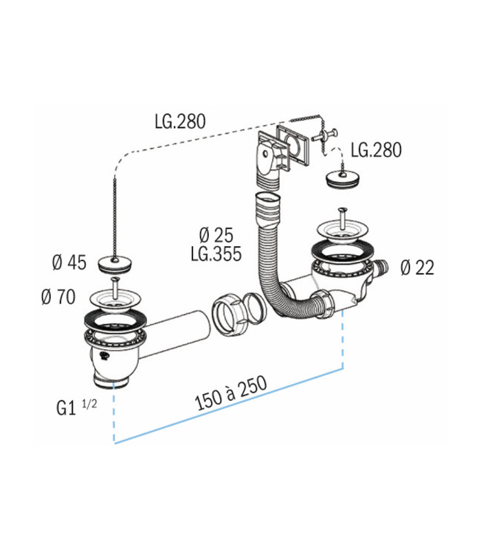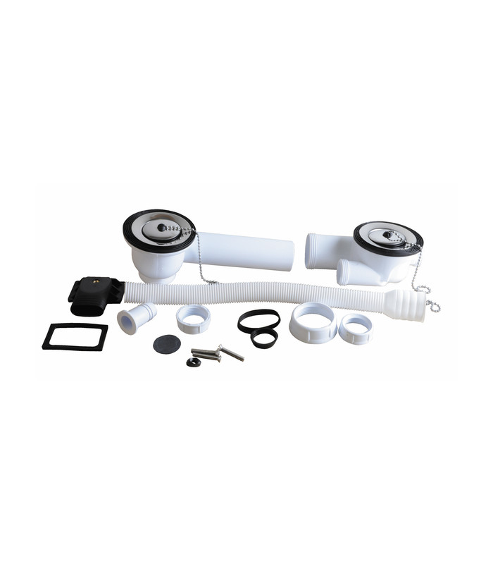 Waste plug and waste outlet for stainless twin bowls sink. No waste trap