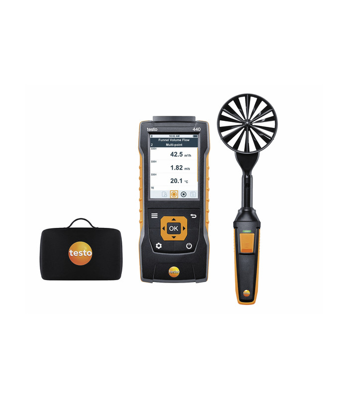 The TESTO 440 multifunction measurement instrument and the hot wire probe provide maximum ease of use and comfort when adjusting air conditioning and air treatment installations.