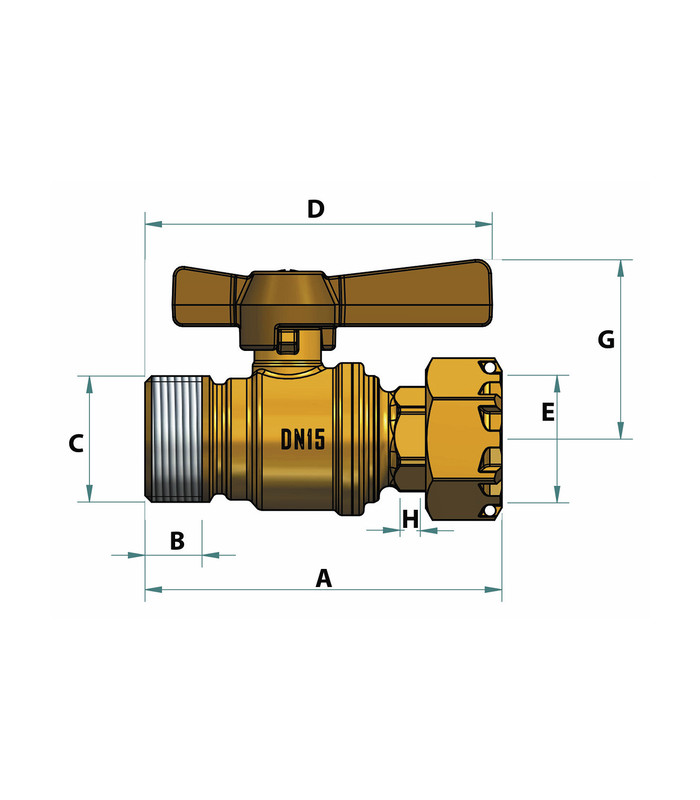 Válvula de corte antes / después del contador MH recta 1/2 "3/4" - DIFF