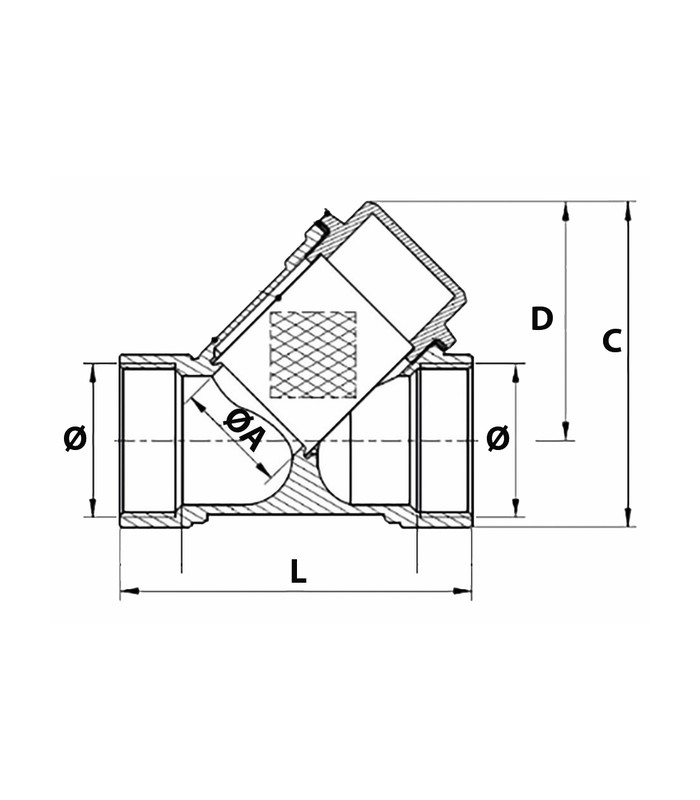 Montaje horizontal o vertical con fluidos descendentes Cuerpo y tapa de latón forjado en caliente Tamiz de acero inoxidable 304 desmontable Malla de 500 µm (0,5 mm) Junta tórica PTFE Límite de temperatura de 0°C a +100°C PS:16b