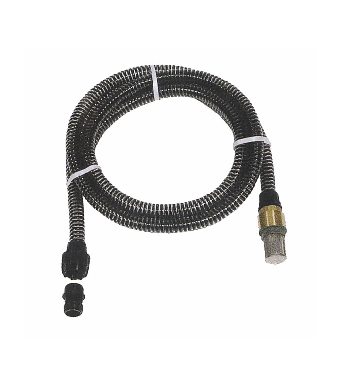 7m - Ø 22 mm Compuesto por un tubo flexible reforzado, una válvula de pie y una conexión de tuerca cautiva con junta plana en 1'' Válvula de latón y filtro de acero inoxidable